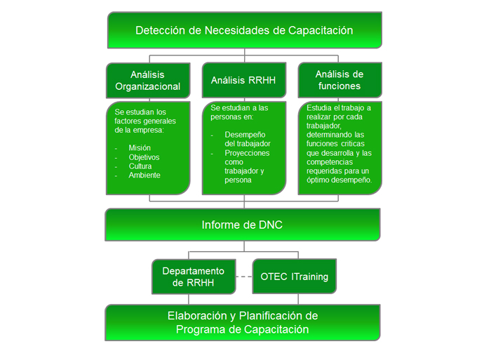 La capacitación en las empresas debe estar orientada al cumplimiento de los objetivos de la organización. Uno de los servicios diferenciadores de OTEC Itraining Capacitaciones es la elaboración de propuestas de capacitación diseñadas conforme a un Diagnóstico de Necesidades de Capacitación DNC.